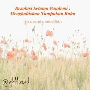 Nah, sekarang saya ingin membahas, bagaimana jika di masa pandemi ini, yang tentu saja banyak waktu di rumah, membuat resolusi baru yaitu menghabiskan tumpukan buku. Disadari atau tidak, waktu kita di rumah akan lebih banyak daripada keluyuran di luar kan? Hihi, iya. Selain menambah pengetahuan kita, tentu ini akan secara tidak langsung mengurangi tumpukan barang-barang yang jarang tersentuh di rumah.